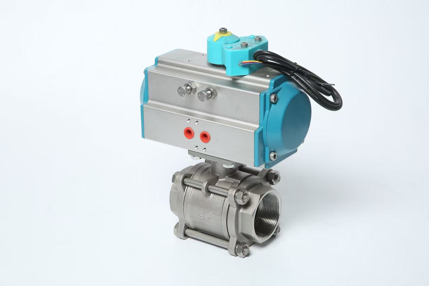 The Pneumatic Three-Piece Threaded Ball Valve is a reliable fluid control component driven by compressed air. Its three-piece body design allows easy disassembly for maintenance, while threaded connections enable quick and convenient piping installation. With a spherical core for precise on-off control, it is widely used in industries like oil, gas, and water treatment for efficient medium regulation.